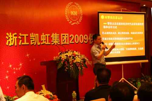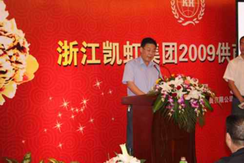 副总经理傅海文代表董事长金虹芸致欢迎辞,副总经理戴国海作了题为《合作共赢 创新未来》的专题演讲。戴副总在演讲中回顾了公司近8年来发展历程,介绍了公司的经营业绩、经营业态和规模实力;他在展望未来10年国内流通行业发展趋势的同时,提出了新经济时代零供合作新的构想和凯虹集团的战略愿景。